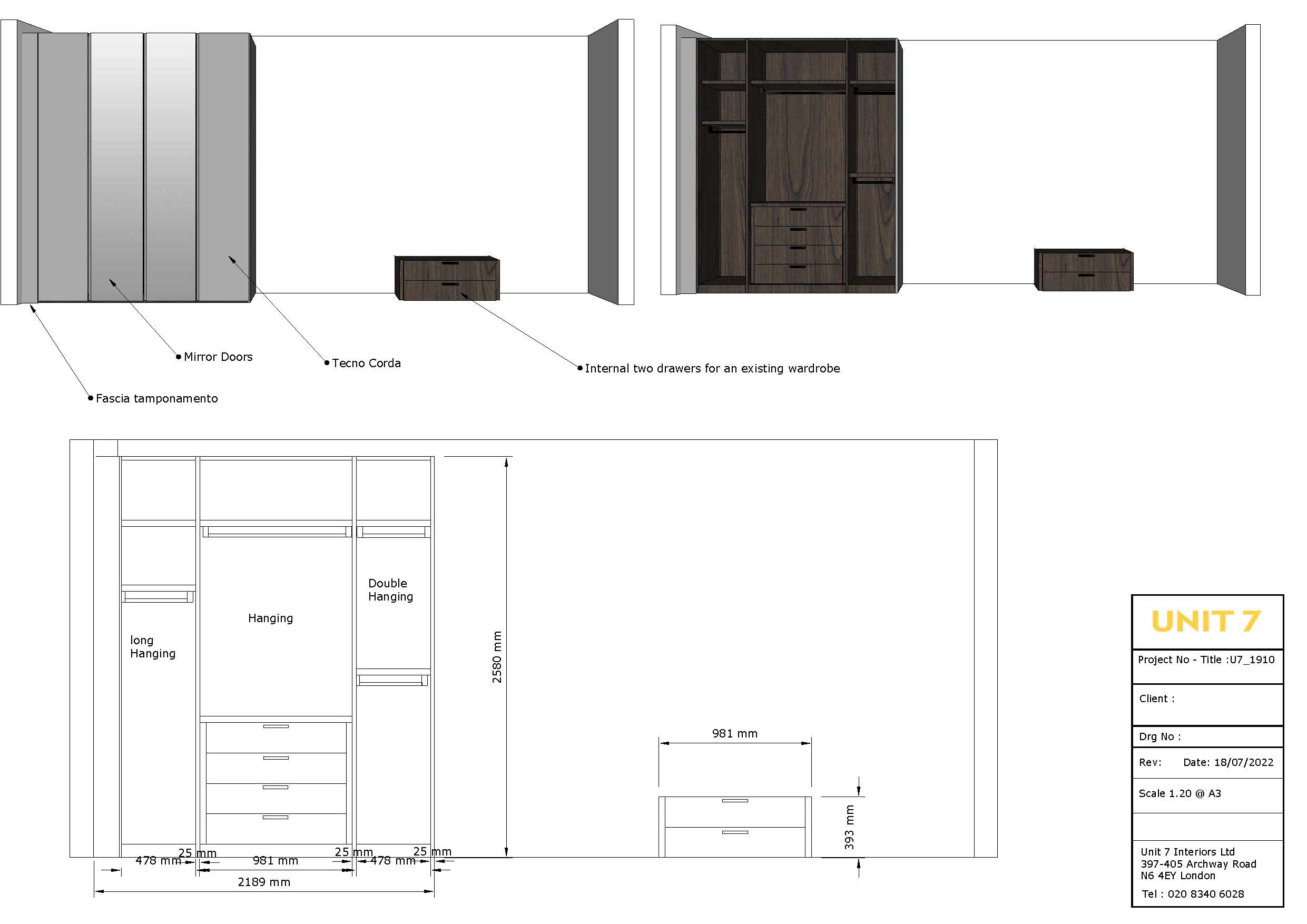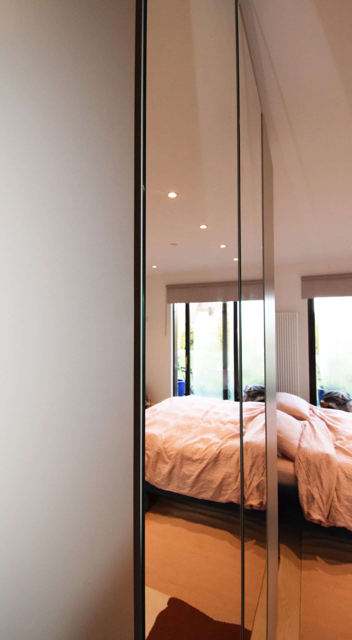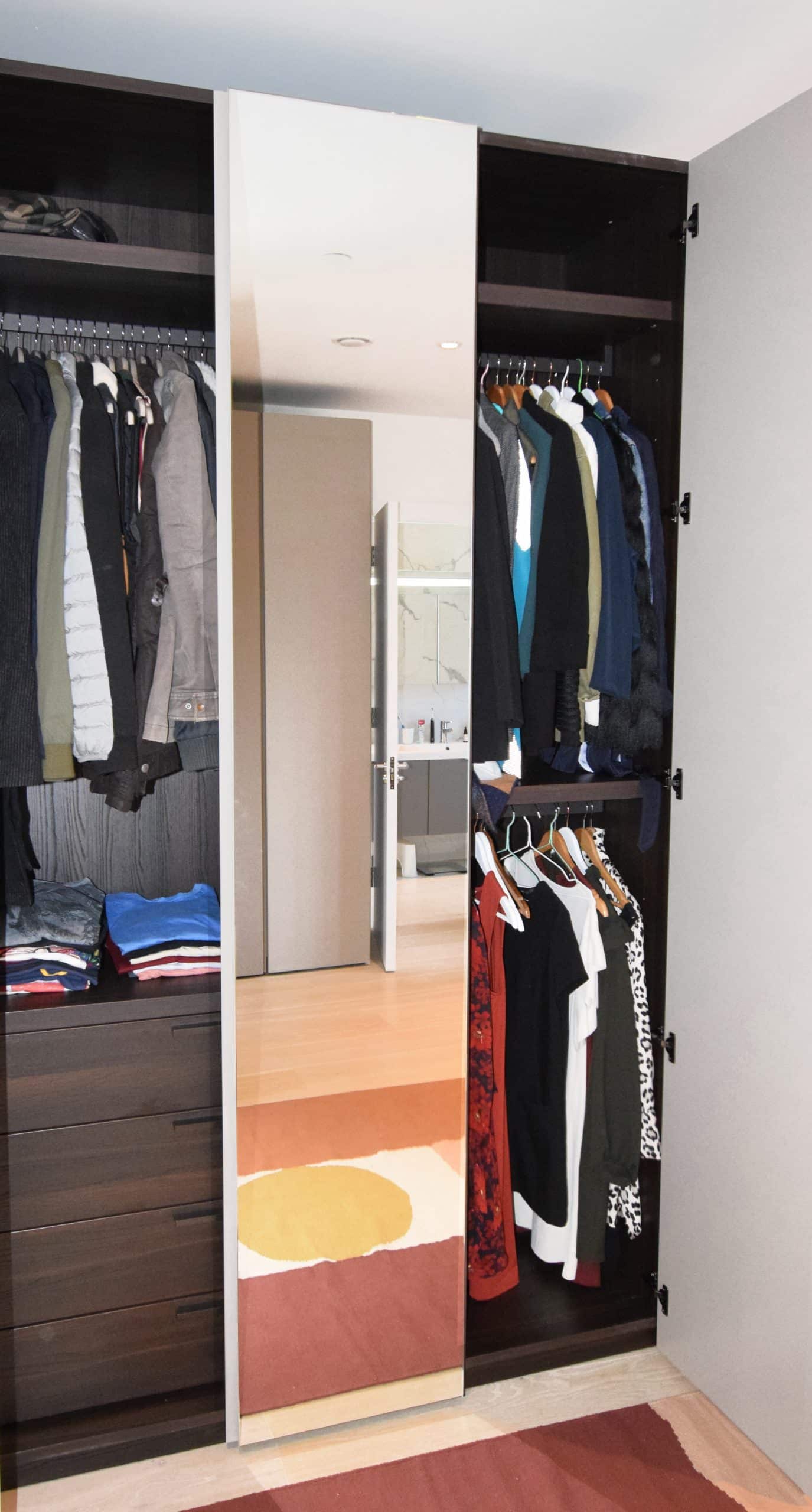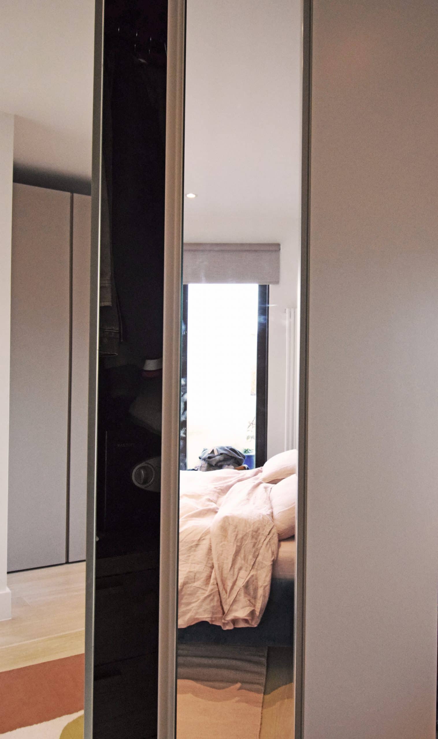 We added one new wardrobe in the master bedroom for additional storage. The wardrobe has been made with mirror doors and lacquered finish the same as the previously fitted wardrobes