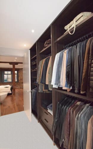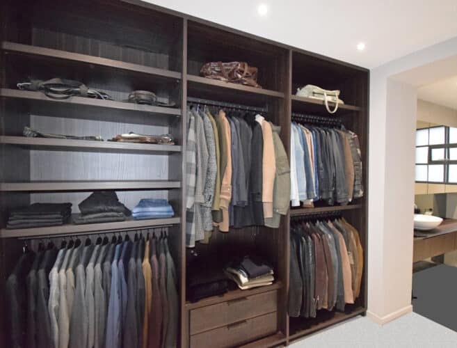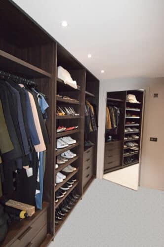 Fitted walk in wardrobes made with heat treated oak